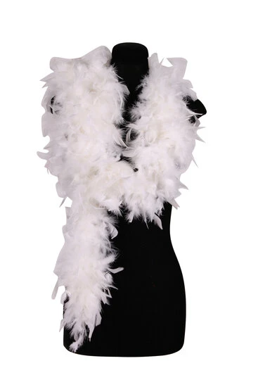 Boa in de kleur wit met een lengte van 180 cm. De boa is voorzien van veren waardoor het een chique uitstraling heeft. De veren maken de boa ook lekker zacht waardoor het draagcomfort hiervan optimaal is. De boa is brandvertragend en heeft een dikte van 50 cm. De ideale toevoeging aan je outfit, fantasiepruik of hoed.