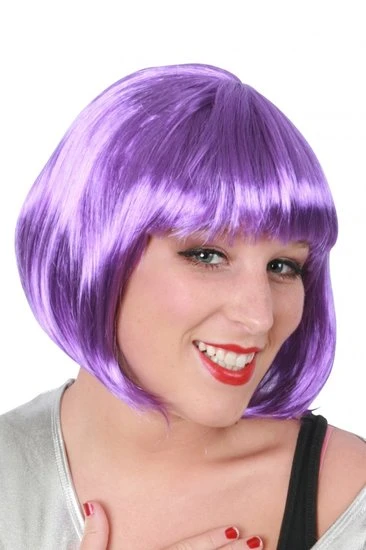 Damespruik kort bobline model in de kleur paars. De pruik komt in een one size en heeft een elastiek waardoor het elke volwassenen past! Deze pruik heeft kort haar, is een bobline model en bestaat uit kunsthaar. Dit model komt in verschillende kleuren waardoor er altijd wel iets voor jou bij zit! Met deze pruik is je oufit helemaal compleet!