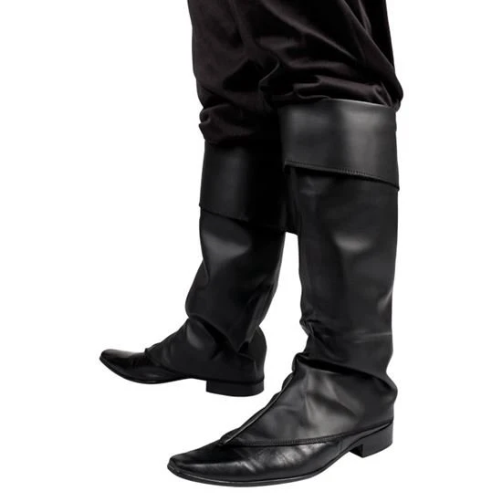 - Zwarte beenkappen. Geschikt voor bijvoorbeeld piraten, musketiers of karakters uit de middeleeuwen.
