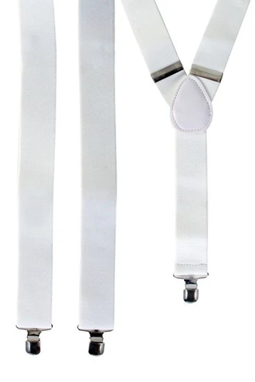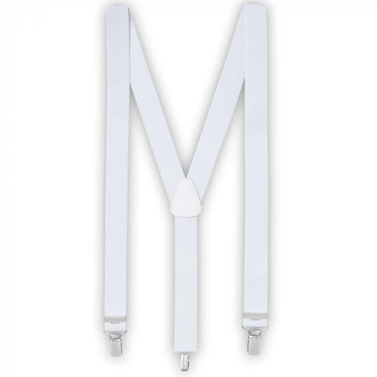 Bretels in de kleur wit. De bretels zijn gemakkelijk te verstelbaar en zijn voorzien van elastische banden met broek clips. De bretels zijn ongeveer 3 cm breed en komen in verschillende kleuren. De bretels bestaan voor 100% uit polyester. Met deze bretels maak jij je oufit helemaal compleet!