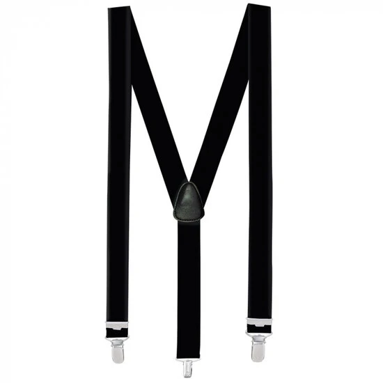 Bretels in de kleur zwart. De bretels zijn gemakkelijk te verstelbaar en zijn voorzien van elastische banden met broek clips. De bretels zijn ongeveer 3 cm breed en komen in verschillende kleuren. De bretels bestaan voor 100% uit polyester. Met deze bretels maak jij je oufit helemaal compleet!