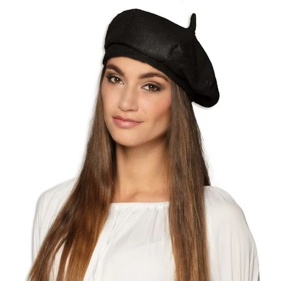 Franse baret in de kleur zwart van stof. De baret is een one size door de elastiek en valt als een volwassen maat. Met deze baret ben jij een echte Fransman of Francaise en ben jij klaar voor elk thema feestje! De baret komt in verschillende kleuren waardoor er altijd iets voor jou bij zit!