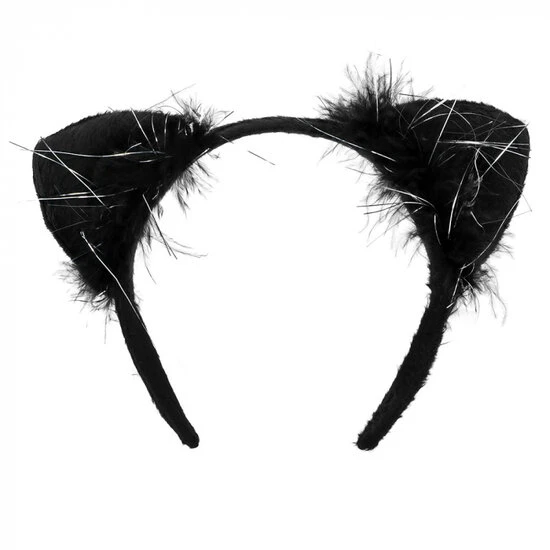 Kattenset in de kleur zwart 2-delig. De set bestaat uit oortjes op diadeem en een kattenstaart. Het setje is van zacht materiaal en is perfect voor een dierenthema of carnaval!