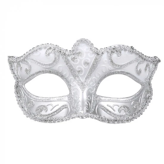 Oogmasker Venice felina Zilver. Dit masker is prachtig om te dragen naar een gemaskerd bal of tijdens carnaval. Door de stijlvolle en sierlijke design met glitters is dit masker perfect voor een feestgelegenheid. Je kan het masker vastmaken door een lint achter je hoofd.