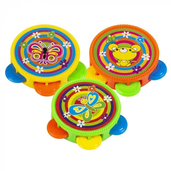 Tamboerijnen die bestaan uit een setje van 3 stuks. De Tamboerijnen worden geleverd in diverse neon kleuren en hebben een afmeting van 14 x 15 cm. De Tamboerijnen zijn leuk om als cadeau te doen of gewoon om zelf te gebruiken! Ook leuk om uit te delen bij een traktatie of een feestje!