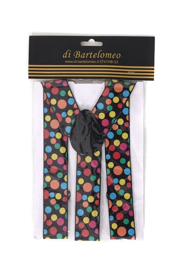 Bretels confettie. De bretel is gemakkelijk te verstelbaar en is voorzien van elastische banden met broek clips. De bretel is ongeveer 3 cm breed en bestaat voor 100% uit polyester. Met deze bretel maak je oufit helemaal compleet! Ook leuk om te combineren met diverse geluid artikelen!