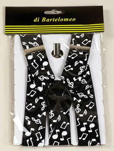 Bretels muzieknoten. De bretel is gemakkelijk te verstelbaar en is voorzien van elastische banden met broek clips. De bretel is ongeveer 3 cm breed en bestaat voor 100% uit polyester. Met deze bretel maak je oufit helemaal compleet! Ook leuk om te combineren met diverse geluid artikelen!