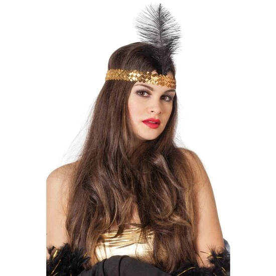 Charleston elastische hoofdband met zwarte veer en rood steentje. De hoofdband is elastisch, waardoor deze altijd past! Leuk om te combineren met andere jaren 20 accessoires!