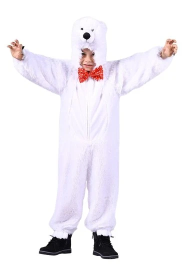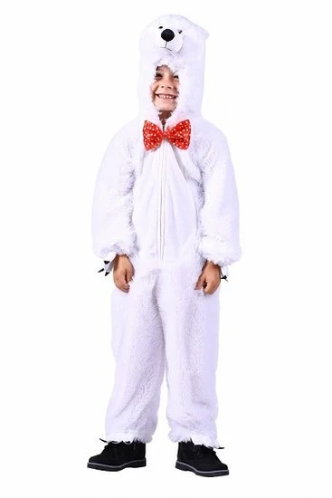 Mooie luxe ijsbeer pluche kostuum in de kleur wit voor kinderen in verschillende maten. Het kostuum is Lekker zacht en is een kwaliteitskostuum uit de Thetru collectie! Het kostuum is voorzien van een rits aan de voorzijde en kan gemakkelijk over je eigen kleuren aangetrokken worden. Leuke kostuum voor carnaval of ander thema feestje!