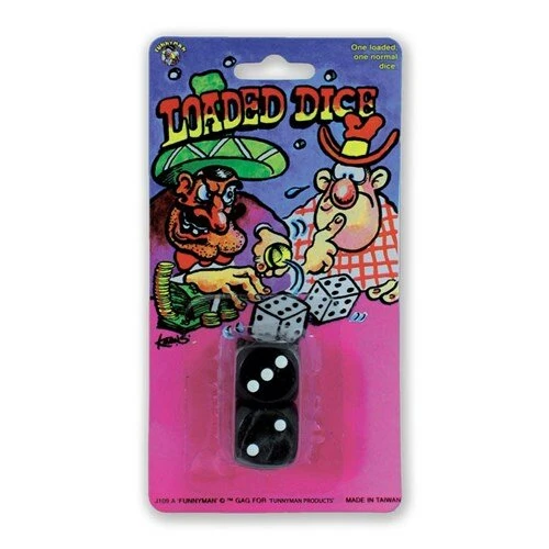 1 verzwaarde dobbelsteen die altijd 6 gooit, 1 normale dobbelsteen. Leuk om vrienden, kennissen en collega’s mee te foppen!