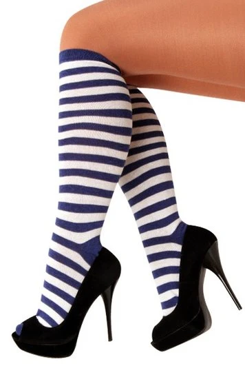 Dorus kousen in de kleuren blauw-wit gestreept. De kousen komen in one size en bestaan voor 100% uit nylon wat zorgt voor een stevige en perfecte fitvorm voor iedereen. De kousen komen in verschillende kleuren waardoor er voor iedereen wel wat bij zit! Deze kousen zijn een leuke accessoire die bij elk feestje van pas kunnen komen. Met deze kniekousen loop jij er in elk geval warm en modieus bij!