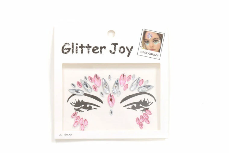 Kleurrijke zilver-roze lichaam en gezicht steentjes zelfplakkend. De steentjes zitten op een sticker, die gemaakt is voor eenmalig gebruik. Haal de stickers voorzichtig van de huid en gebruik wimperlijm om deze stickers te herbruiken. Set van ongeveer 30 stickers bestaand uit druppels en rondjes. Aanbrengen op een droge huid.