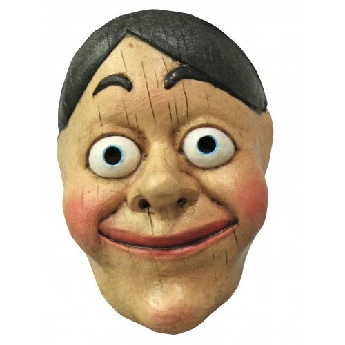 - Wood Puppet (Houten pop)gezichtsmasker. Bedekt de voorklant van het gezicht en heeft een open achterkant.