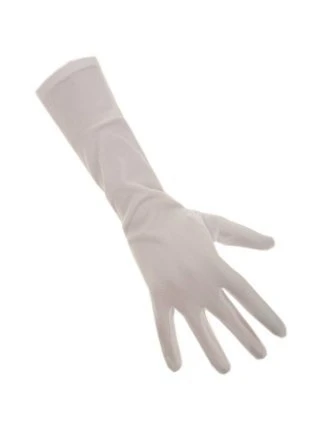 Handschoenen wit lang model. Deze handschoenen zijn gemaakt van stretchstof en zijn beschikbaar in verschillende maten waardoor er voor iedereen wel iets tussen zit! De grootte van de handen bepaald automatisch de lengte van de handschoenen. Deze handschoenen zijn ideaal voor elke feestgelegenheid.