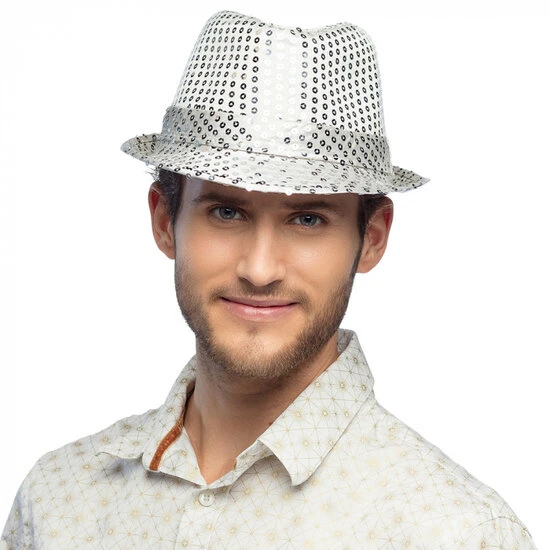 Popstar hoed in de kleur zilver. De hoed is een Kojak model en geheel voorzien van pailletten wat voor een extra disco sfeer zorgt! De hoed is een one size, volwassen maat en komt in verschillende kleuren waardoor er altijd iets voor jou bij zit. Met deze hoed ben jij klaar voor elk disco, thema of ander feestje!