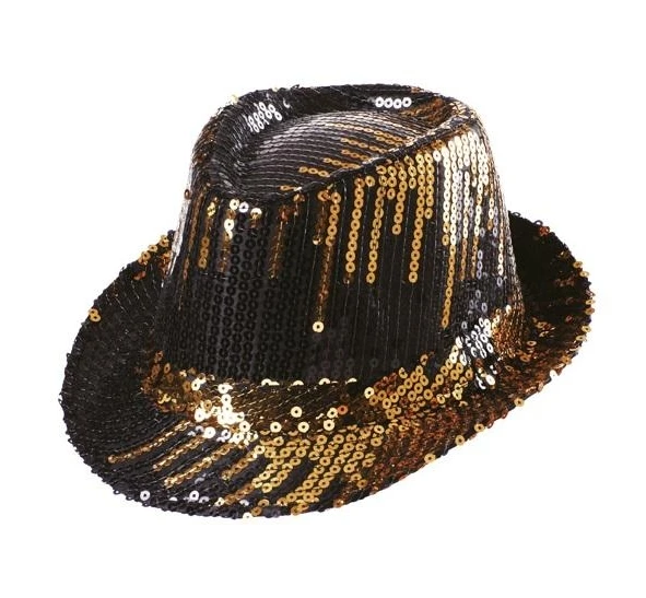 Popstar hoed in de kleur zwart-goud. De hoed is een Kojak model en geheel voorzien van pailletten wat voor een extra disco sfeer zorgt! De hoed is een one size, volwassen maat en komt in verschillende kleuren waardoor er altijd iets voor jou bij zit. Met deze hoed ben jij klaar voor elk disco, thema of ander feestje!