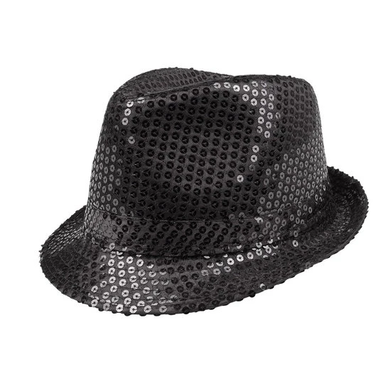 Popstar hoed in de kleur zwart. De hoed is een Kojak model en geheel voorzien van pailletten wat voor een extra disco sfeer zorgt! De hoed is een one size, volwassen maat en komt in verschillende kleuren waardoor er altijd iets voor jou bij zit. Met deze hoed ben jij klaar voor elk disco, thema of ander feestje!