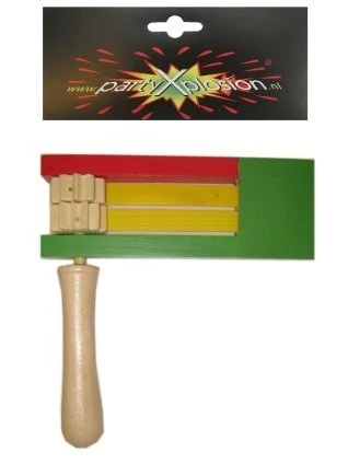 Dubbele ratelaar van hout in leuke fleurige kleuren. De ratellaar zorgt voor een hard ratel geluid en is perfect om te gebruiken als instrument! Leuke ratellaar om als cadeau te doen of gewoon zelf te gebruiken!