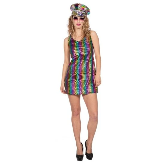 Regenboog jurkje bling kort model. Perfect voor een festival of goud feest!