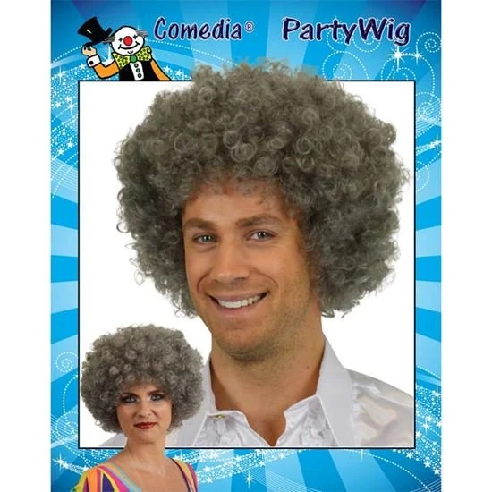 - Krullenbol pruik in de kleur grijs.