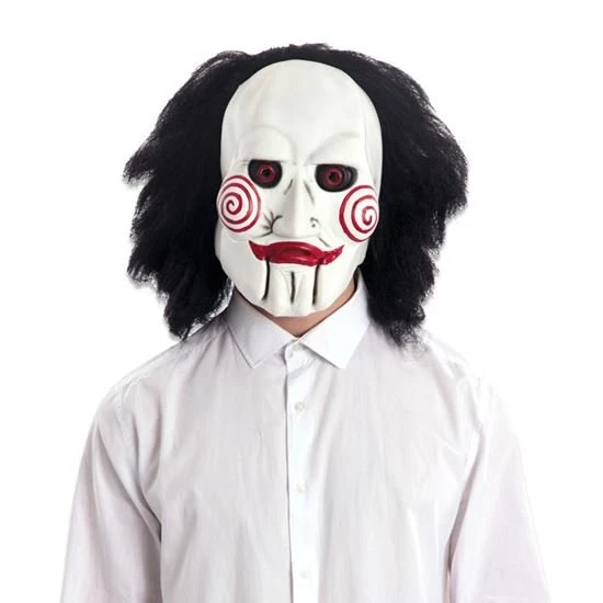 Masker Saw, gemaakt van rubber. Aan het masker zit zwart haar wat zorgt voor een realistisch effect! Zeer eng masker, geschikt voor halloween.