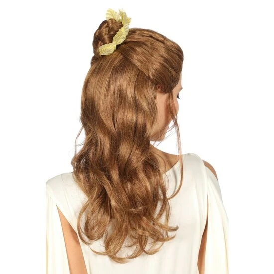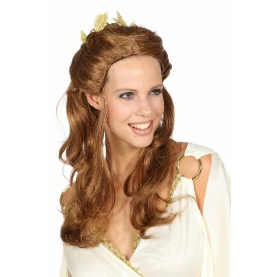 Luxe damespruik lang model in de kleur bruin/rood. De pruik komt in een one size en heeft een elastiek waardoor het elke volwassenen past! Deze pruik is een lang model en bestaat uit kunsthaar. Verder is de pruik nog voorzien van mooie gouden blaadjes wat er uitziet als een krans. Leuke fantasty pruik die gebruikt kan worden als elf, cosplay of gewoon bij een kostuum! Met deze pruik is je oufit helemaal compleet!
