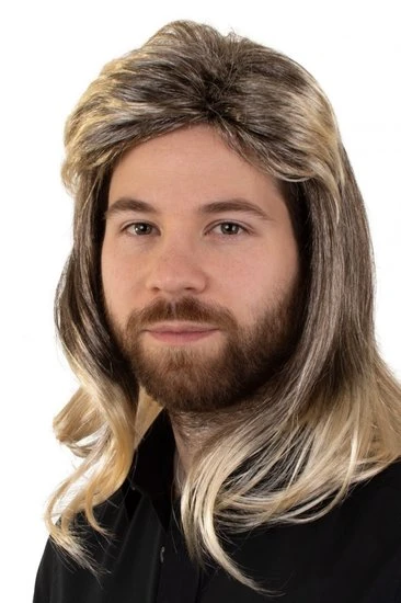 Herenpruik kort model met een lange mat in de kleur blond gemeleerd. De pruik komt in een one size en heeft een elastiek waardoor het elke volwassenen past! Deze pruik is een steil model en bestaat uit kunsthaar. Dit model komt in verschillende kleuren waardoor er altijd wel iets voor jou bij zit! Met deze pruik is je oufit helemaal compleet! Deze pruik geeft jou een stijlvolle jaren 80/90 look. Leuk om te combineren met een jaren 80 trainingspak!