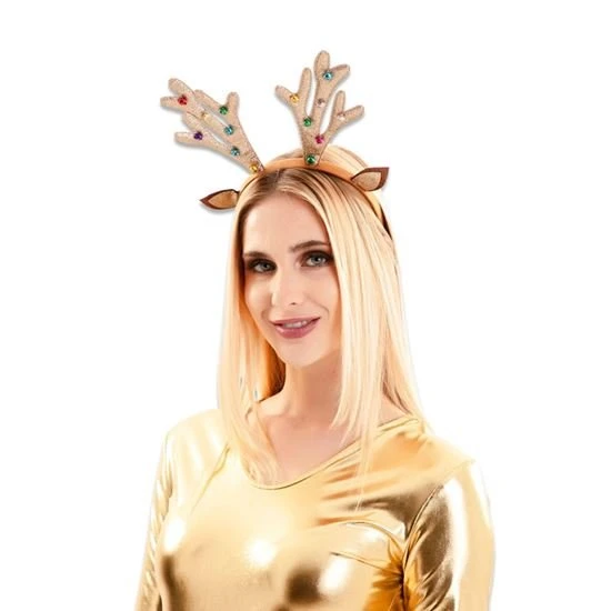 Bruine rendier tiara glitter met belletjes in verschillende kleuren die geluid maken. De diadeem is van stof waardoor de tiara comfortabel op je hoofd zit. De belletjes en glitters zorgen voor een feestelijke sfeer. De tiara heeft een afmeting van 26 x 22,5 cm. Maak je kerst outfit helemaal af met deze tiara! Ook leuk om buiten kerst om te dragen of als decoratie!