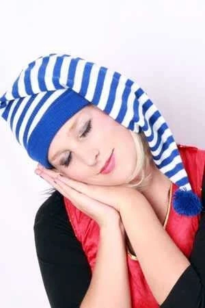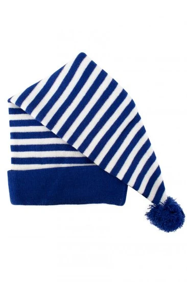 - Slaapmuts blauw-wit gesteept. One size met wit bolletje aan het uiteinde.