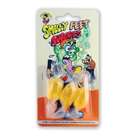Grappige snoepjes met een vieze zweetvoeten smaak. De snoepjes komen in een verpakking van 3 stuks en komen in verschillende soorten en smaken. Deze snoepjes zijn extra leuk om aan vrienden, kennissen en collega’s te geven.