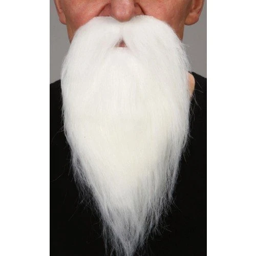 Snor met baard in de kleur wit. De baard heeft een lengte van 18 cm en komt in verschillende kleuren. De baard is zelfklevend, van goede kwaliteit en gemaakt voor eenmalig gebruik. Haal de baard voorzichtig van de huid en gebruik huidlijm om deze te herbruiken. Mocht je de baard lang gebruiken kan het zijn dat deze langszaam loslaat door transpiratie. Gebruik in dat geval dan ook huidlijm.