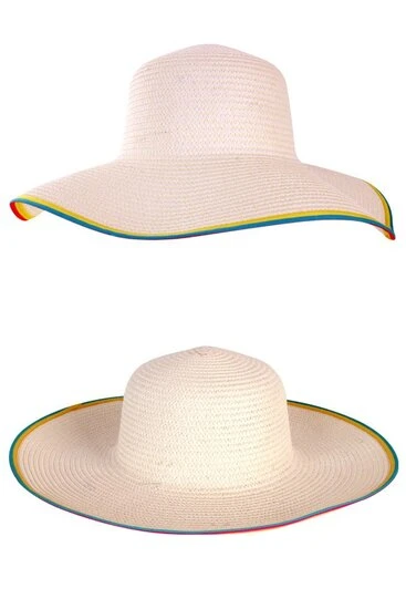 - Product: strandhoed stro met gekleurde rand