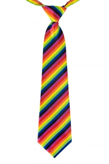 Stropdas in de kleur regenboog. De stropdas is gemaakt van satijn wat zorgt voor een luxe en mooie uitstraling. De stropdas is verstelbaar en kan worden vastgemaakt met een ritssluiting waardoor iedereen deze past! De stropdas komt in verschillende kleuren waardoor er altijd wel iets voor jou bij zit! Of je nou carnaval, gala of een andere feestgelegenheid viert, deze stropdas maakt het helemaal af.