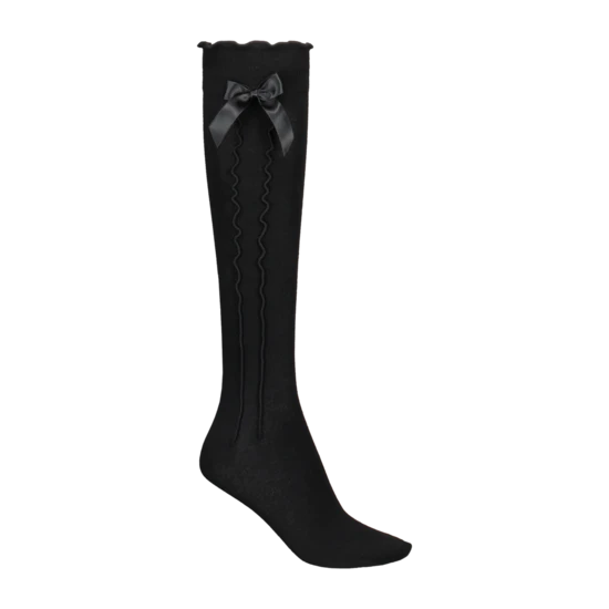 Kniekousen die tot knielengte komen. De kniekousen zijn met ingebreide ruches en satijnen strik. De kousen bestaan voor 75% uit katoen, 22 uit polyamide en 3% uit elastaan. Deze kniekousen maken je oufit helemaal compleet! Je kan ze gebruiken voor de Tiroler feesten, Kerst maar ook Halloween.
