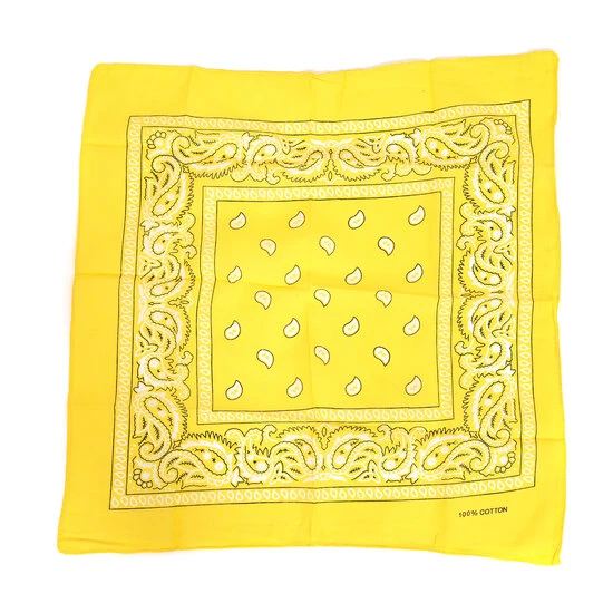 Traditionele boerenzakdoek in de kleur geel. De zakdoek is afgebeeld met diverse mooie motieven, is enkelzijdig gedrukt en kan ook worden gebruikt als bandana. De zakdoek komt in verschillende kleuren, waardoor er altijd wel iets voor jou bij zit!. De zakdoek heeft een afmeting van 53 x 53 cm en bestaat uit polyester. Leuke bandana voor elk feestje!
